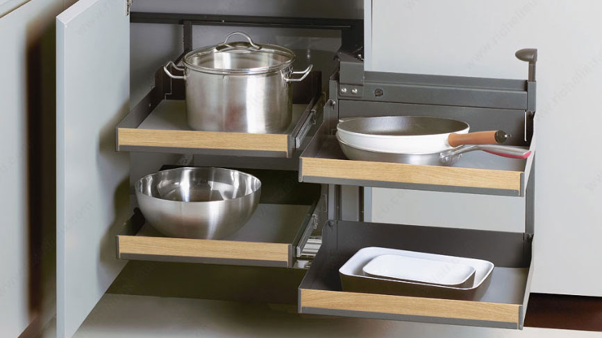 To optimize your cabinets’ functionality and storage, choose accessories that improve your day-to-day living experience. Accessories include items like waste bins, spice racks, cutlery trays and much more.